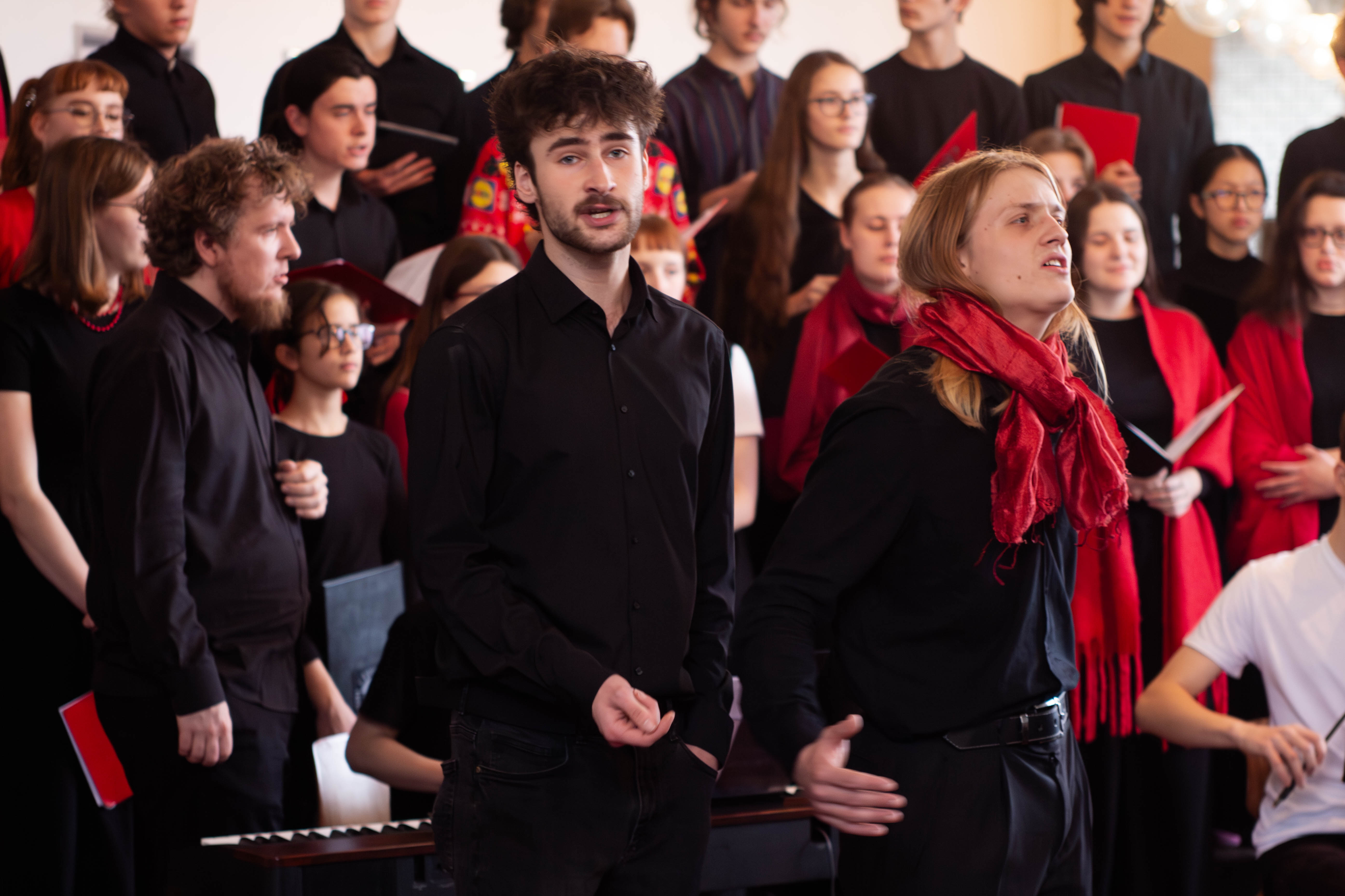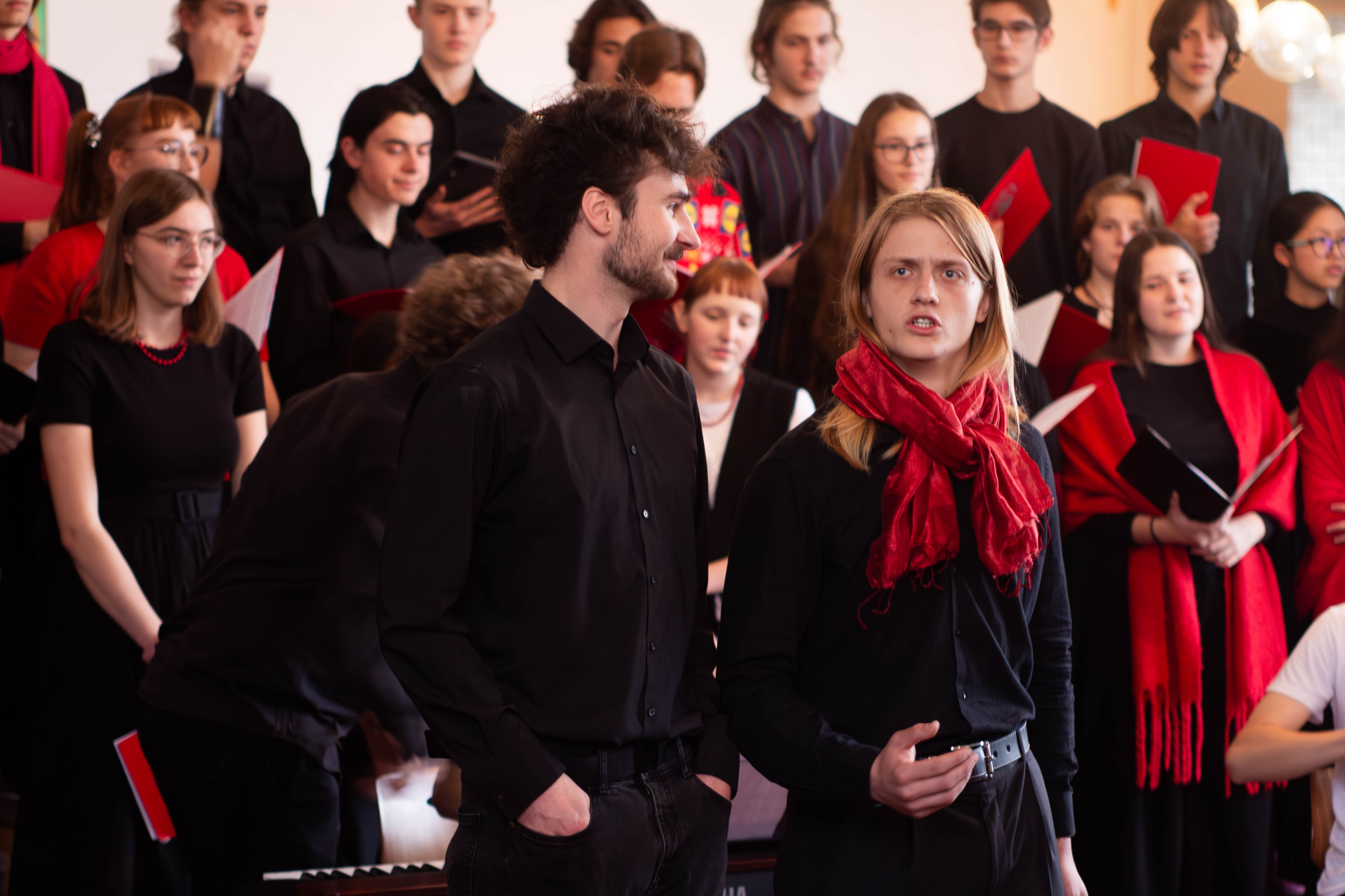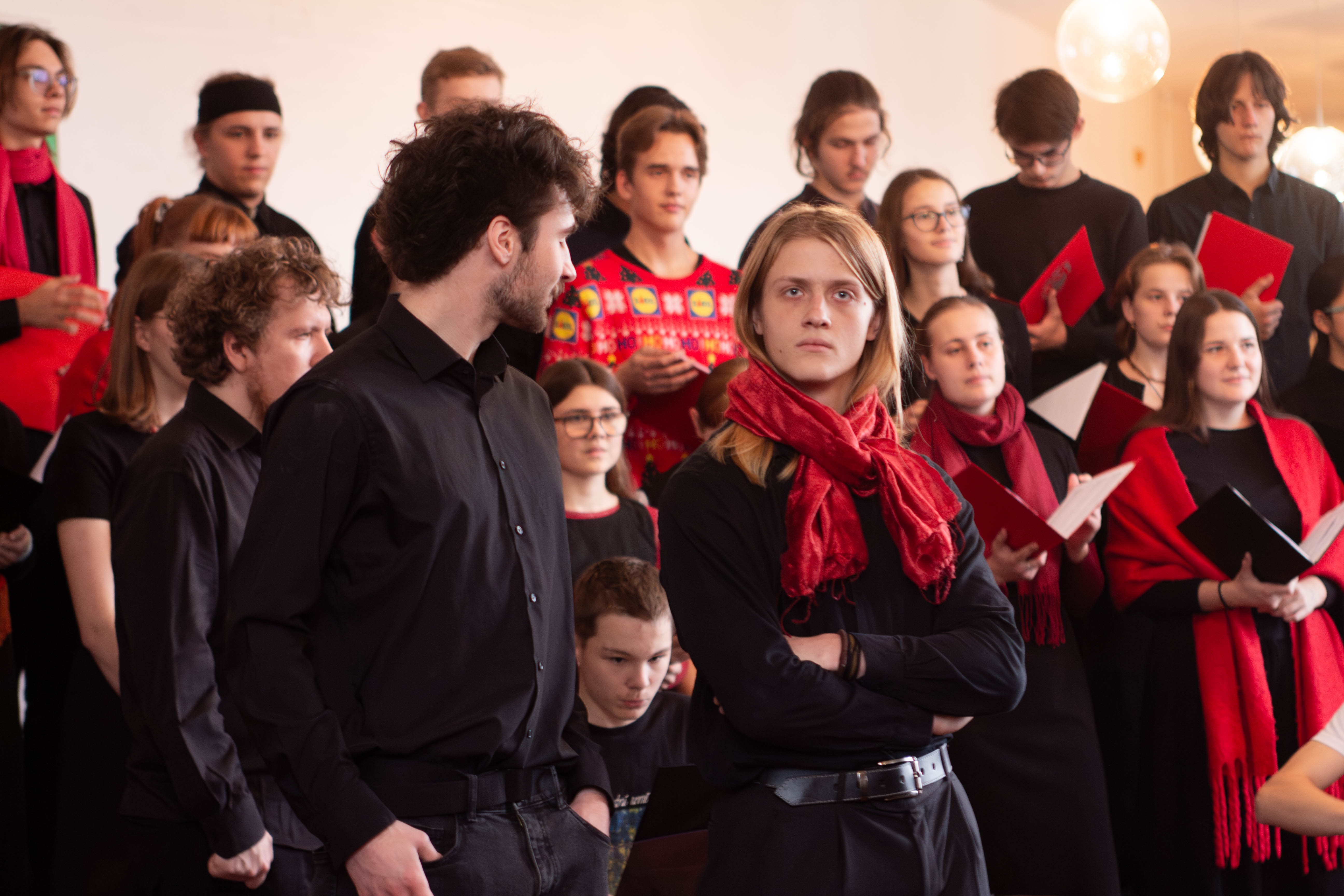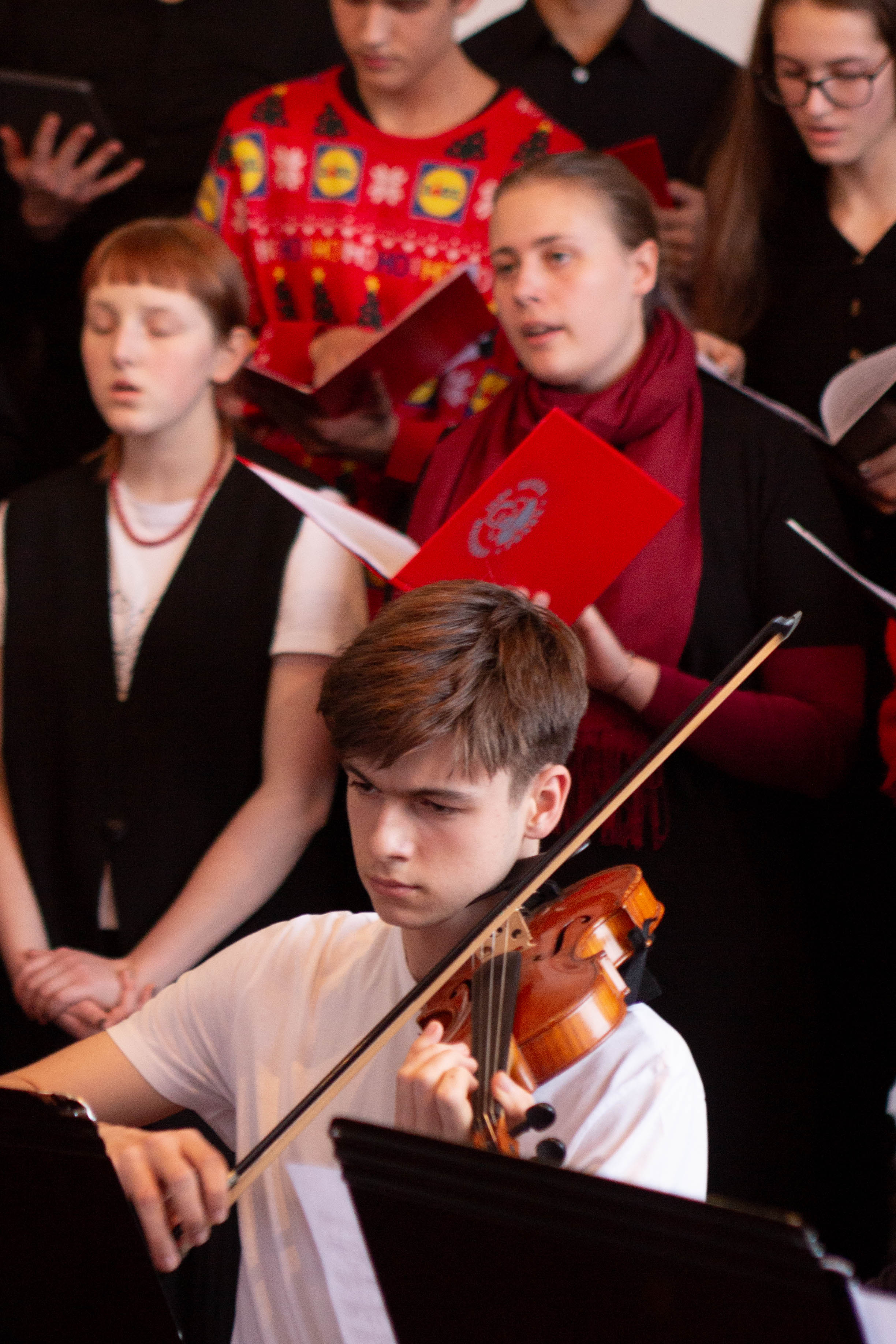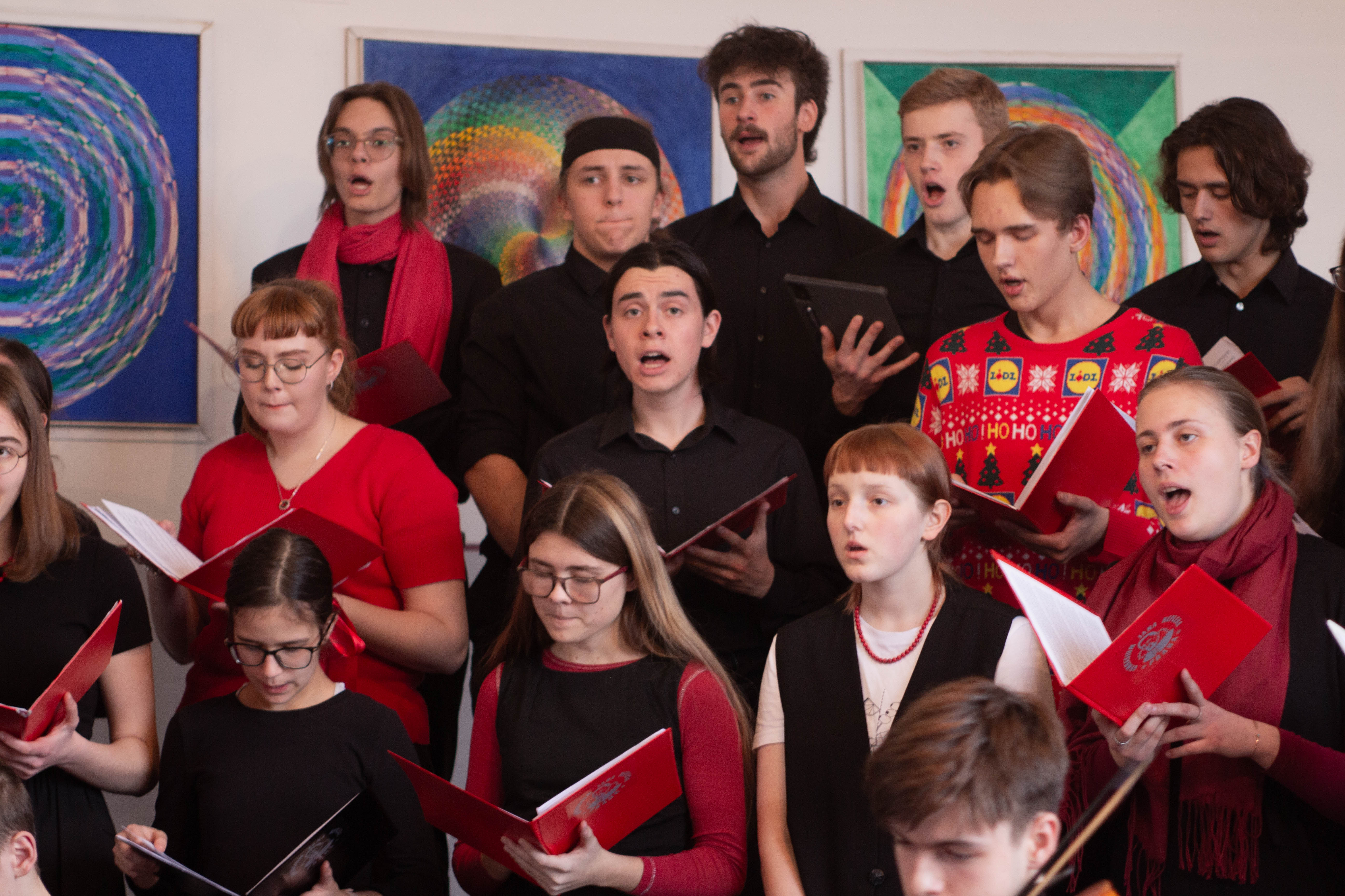 V programu zazněly adventní a vánoční písně v úpravě Martina Boumy a části České vánoční mše Jakuba Jana Ryby – Hej mistře. Sólových partů učedníka a mistra se se ctí ujali studenti oktávy Hubert Tichý a Marek Jakoubek. Na závěr si všichni přítomní zazpívali tři známé koledy. Společným zpěvem Narodil se Kristus Pán tak na naší škole začaly vánoční oslavy.
