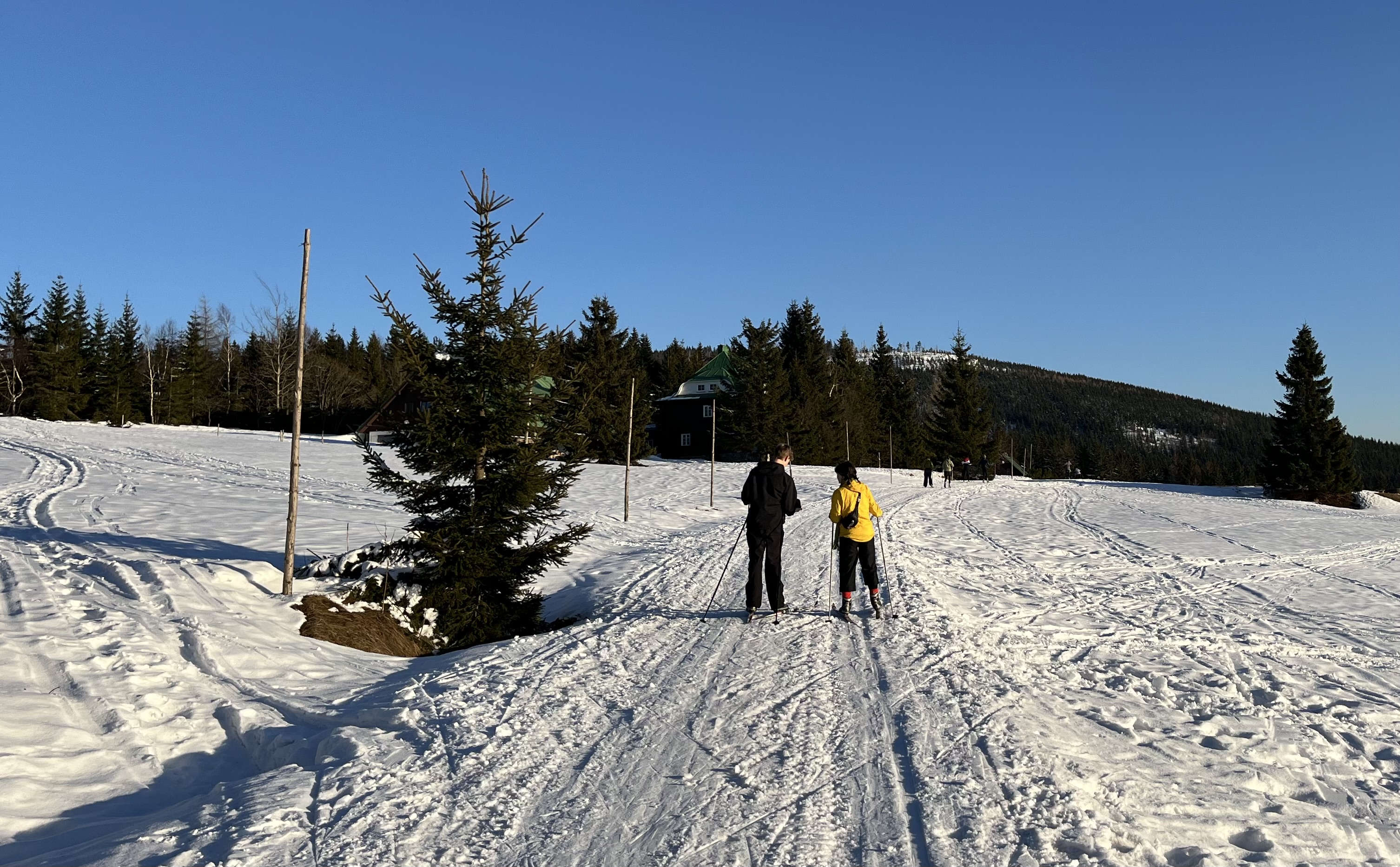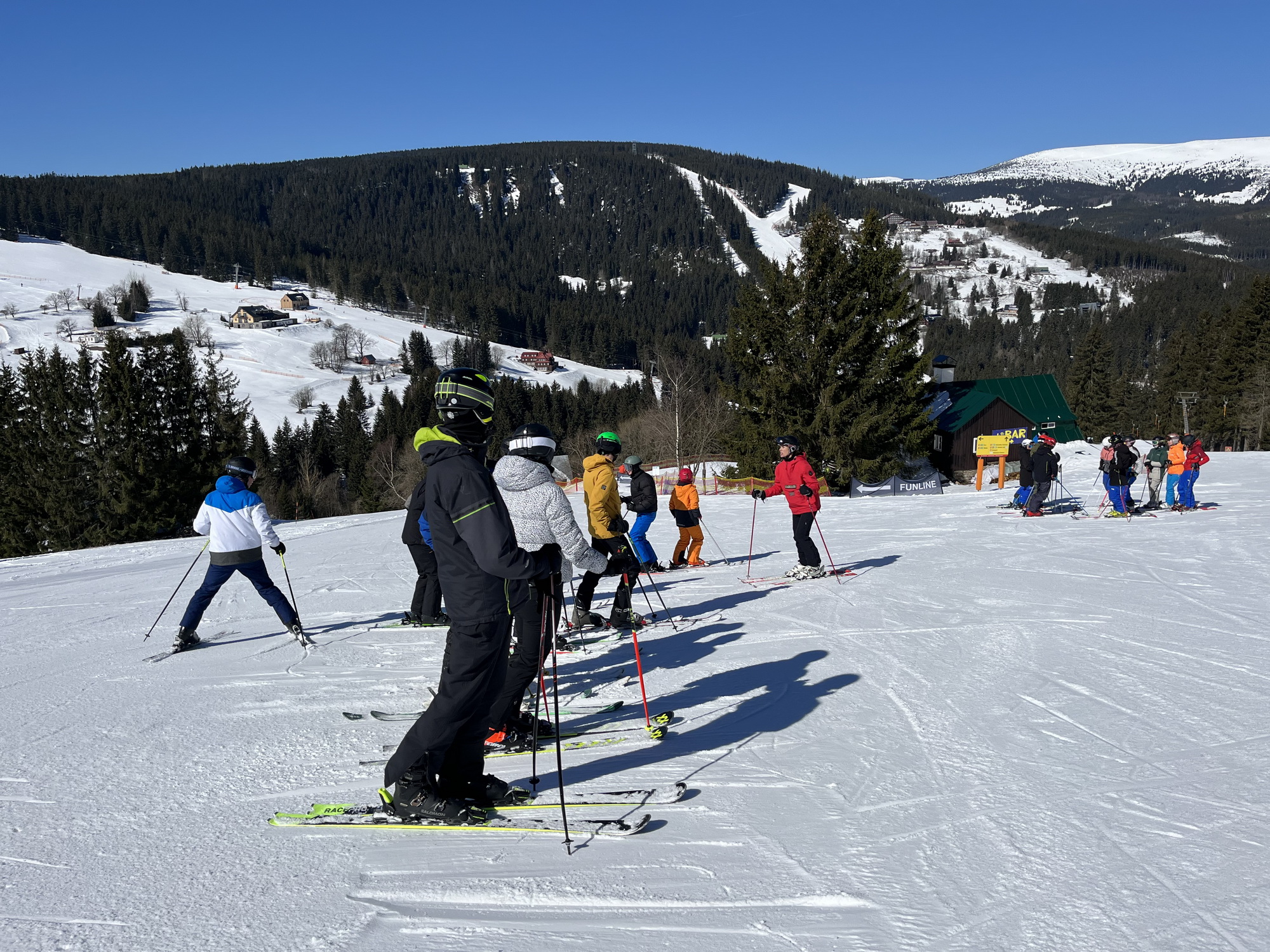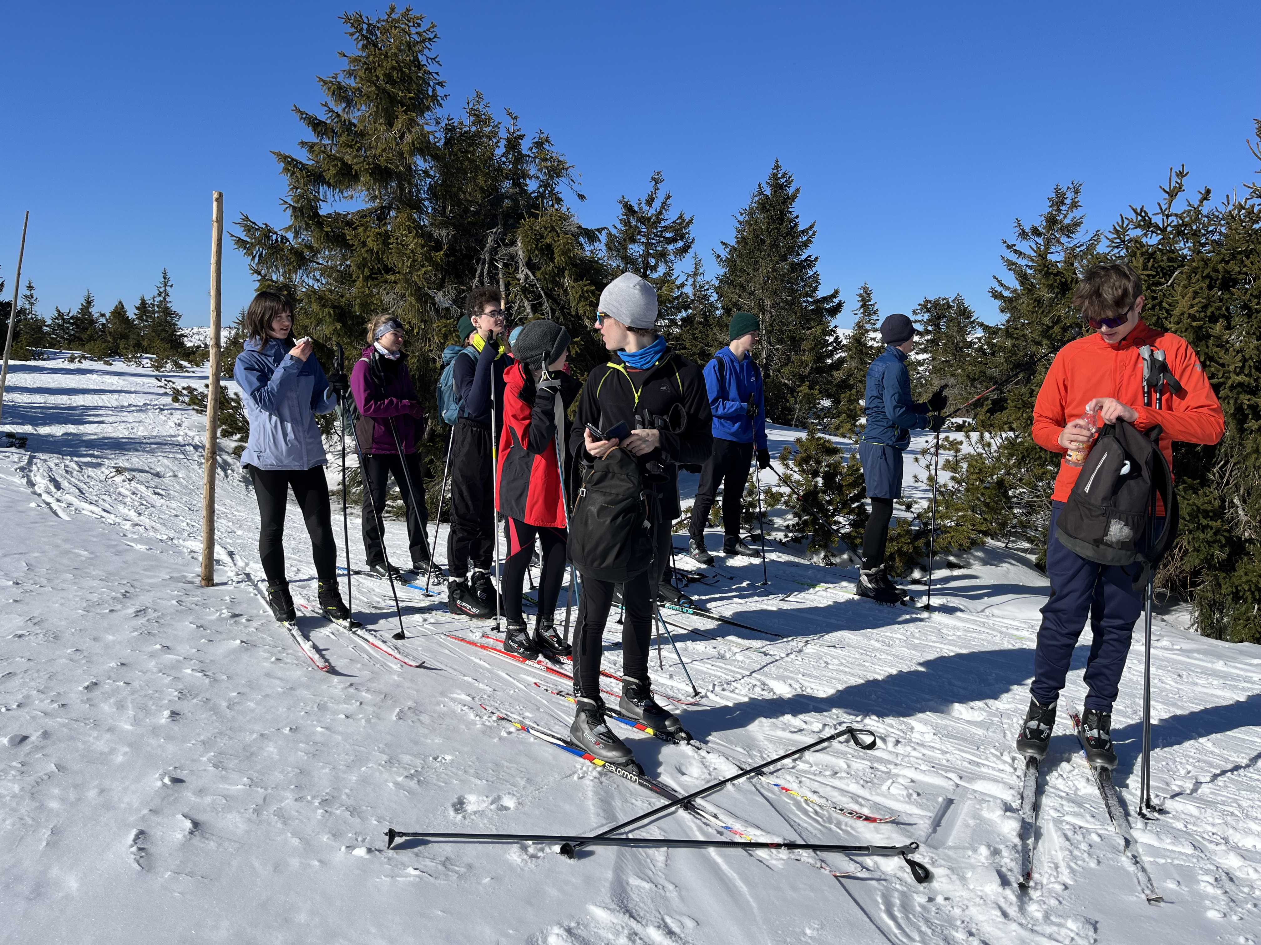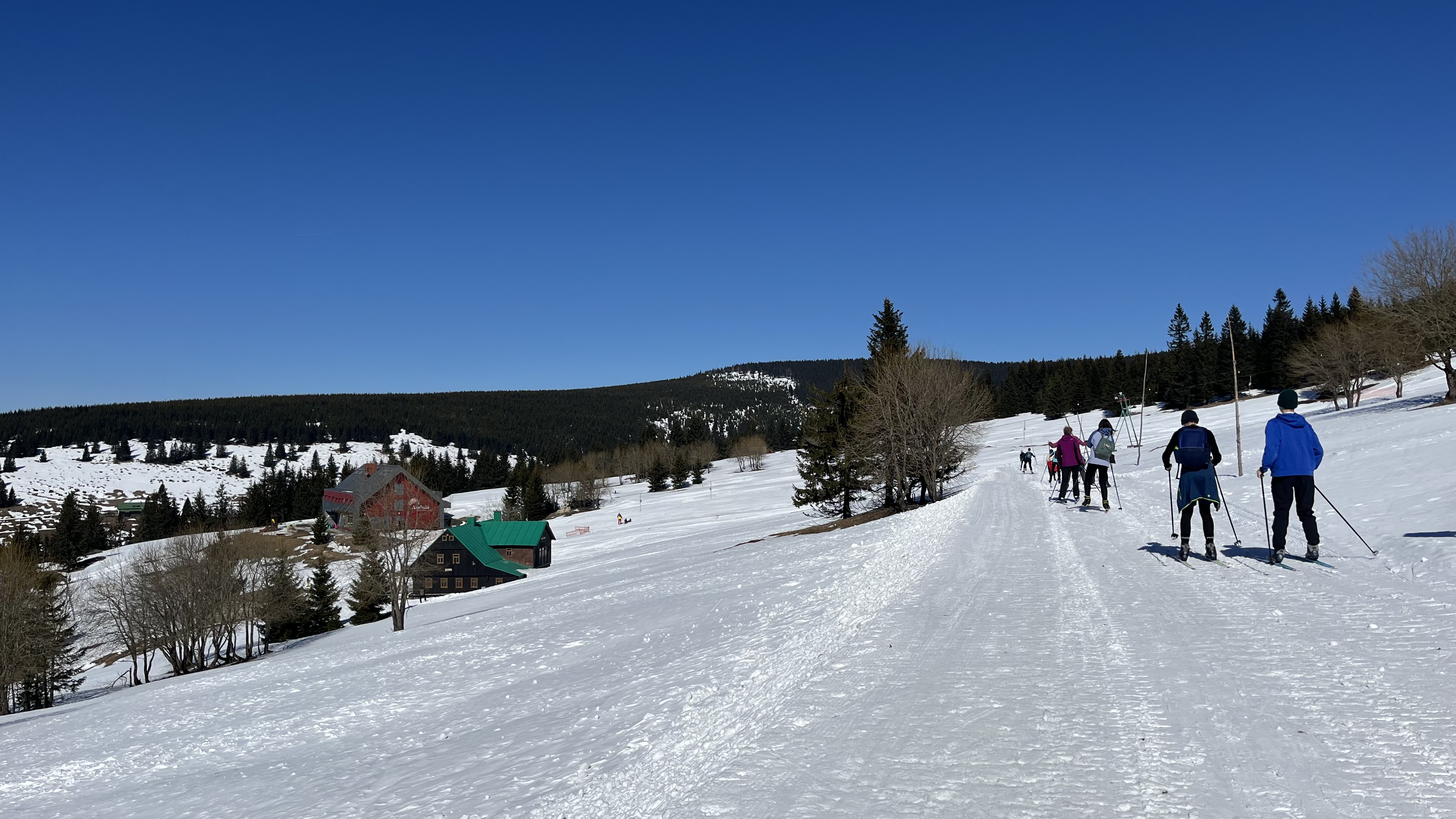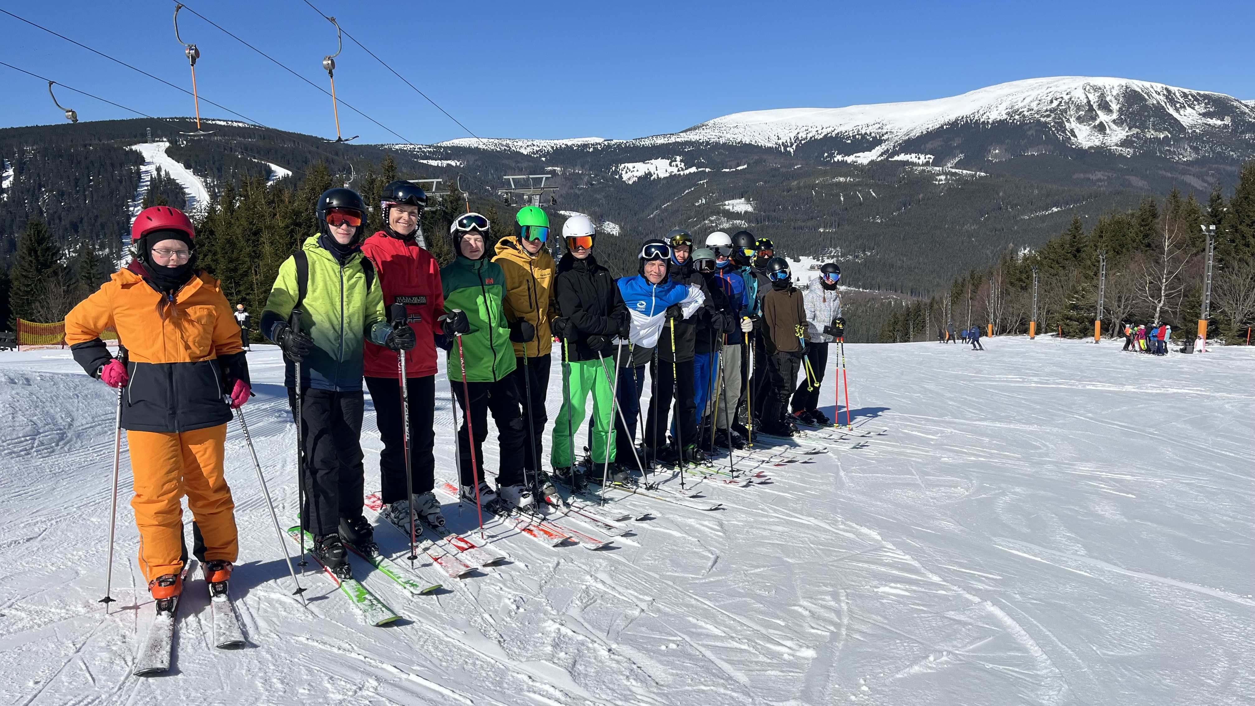 Jsme zpátky z kurzu, který proběhl za krásného počasí a na březen i velmi vydařených sněhových podmínek. Díky nim jsme si užili jak dopoledního lyžování (popřípadě “snowboardování”), tak i odpoledních běžek. A možná díky nim nikdo ani tak moc neprotestoval, když jsme vyrazili na celodenní výlet na běžkách přes Friesovy boudy na chatu Na Rozcestí a Výrovku. Dokonce jsme byli tak rychlí, že jsme stihli ještě to odpoledne cvičit divadelní představení s horskou tematikou (ta byla mimochodem také velmi povedená).