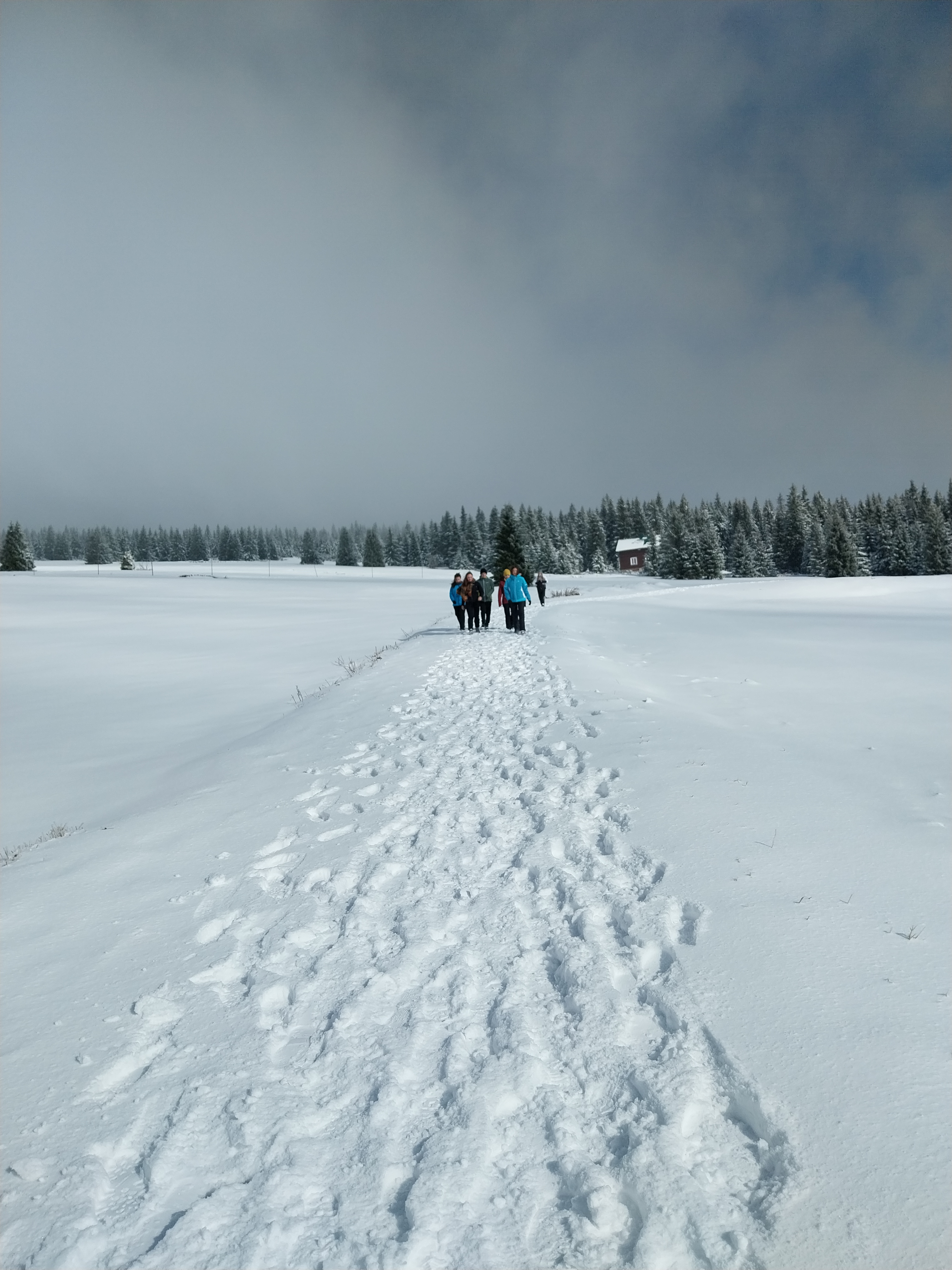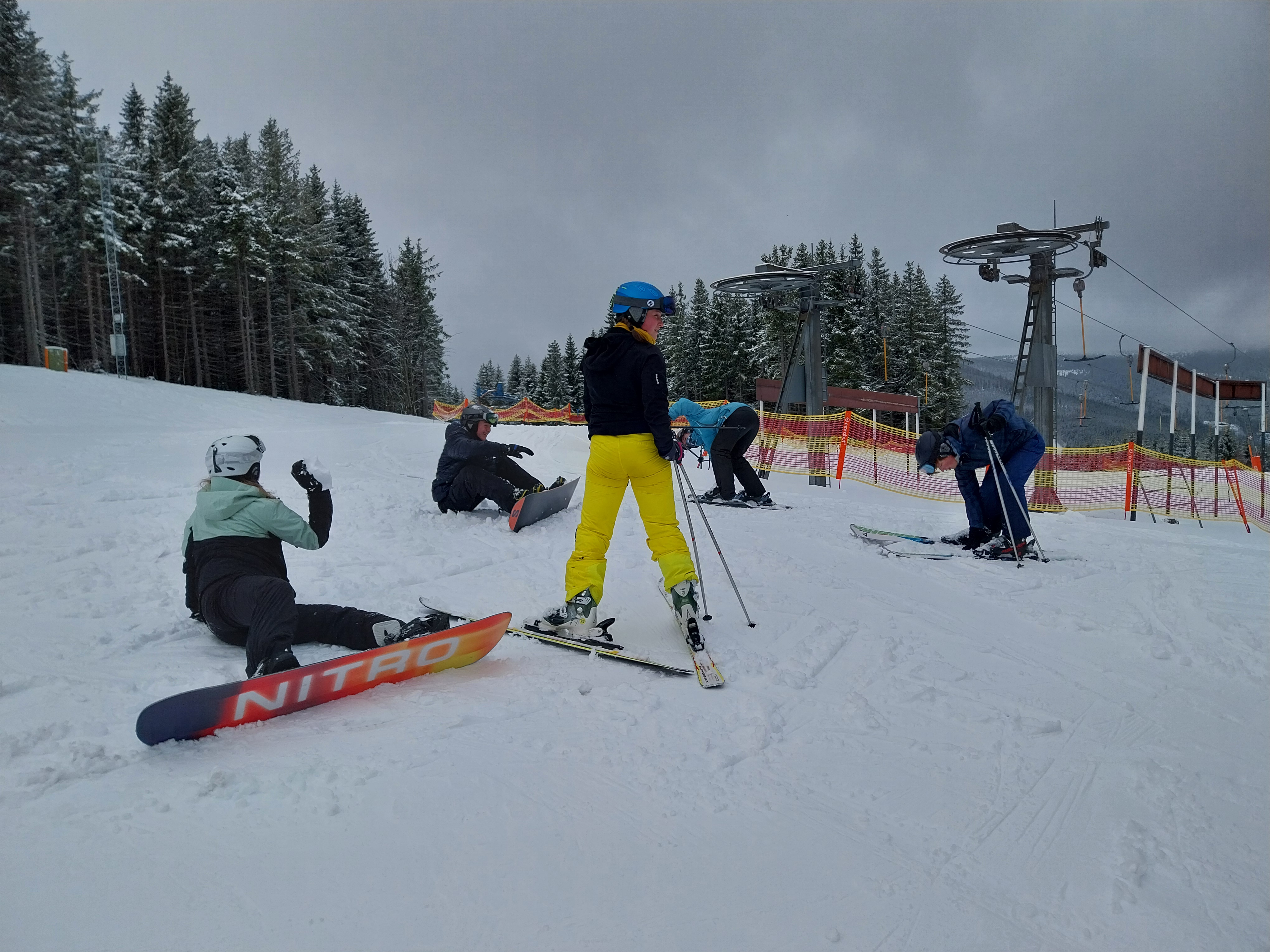 Někteří studenti druhého ročníku se sportovním duchem se zúčastnilo jazykového kurzu v Krkonoších na chatě Mír. Nasněžilo, svítilo slunce, hřálo a foukal vítr – podmínky byly bezvadné.